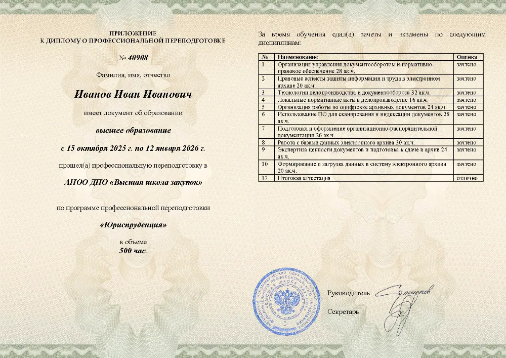 Это полноценная образовательная программа для получения дополнительной квалификации и освоения новой профессии. Для поступления также требуется высшее или среднее профессиональное образование (СПО). Итоговым документом является полноценный диплом о профессиональной переподготовке, который ценится на рынке труда. Программы являются наиболее объемными и начинаются от 250 академических часов, что обеспечивает глубокое погружение в специальность.